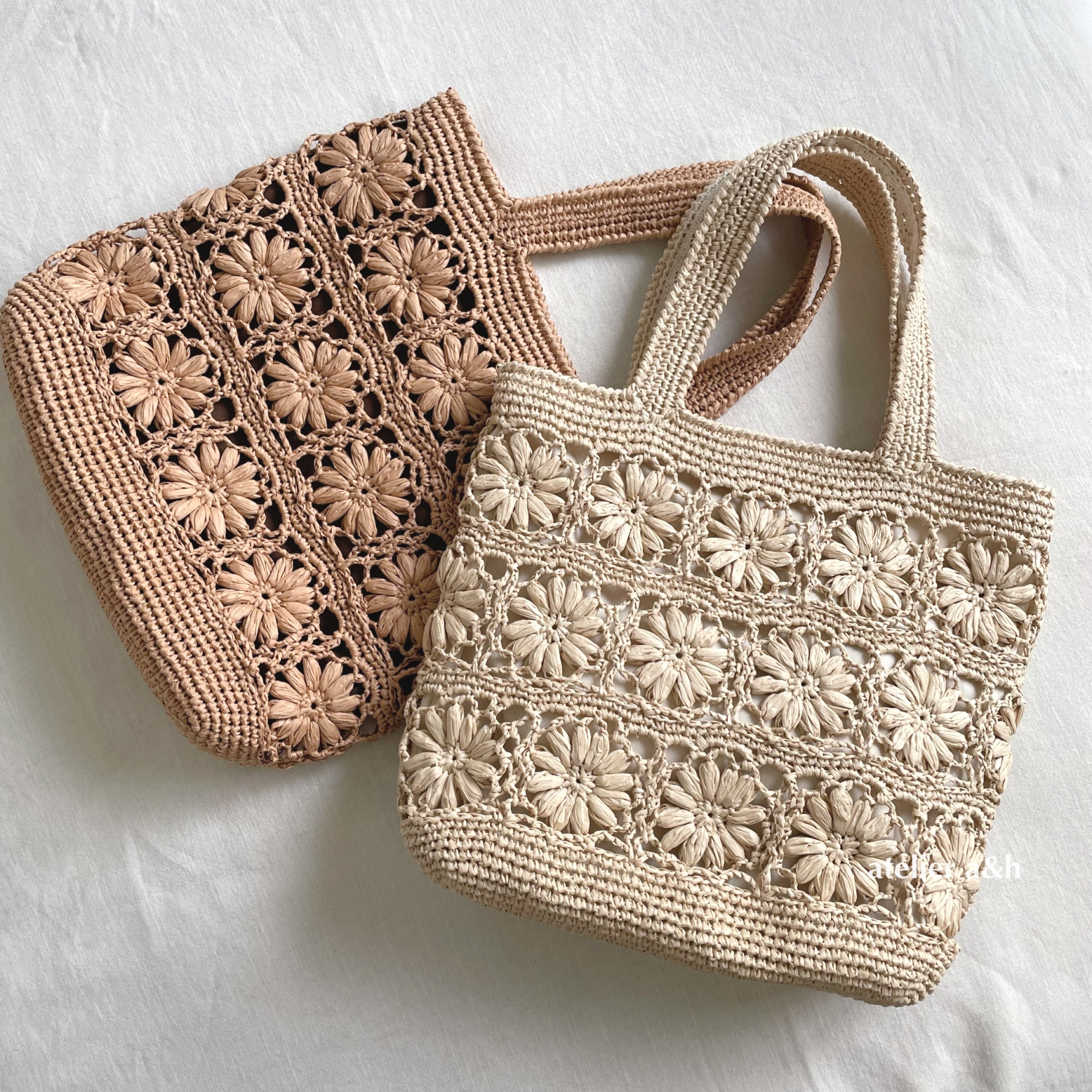 #トートバッグ #マーガレットモチーフ #ナチュラル #花模様 #大きめサイズ #麻ひもバッグ #普段使い#カゴバッグ#麻紐バッグ#麻ひもバッグ