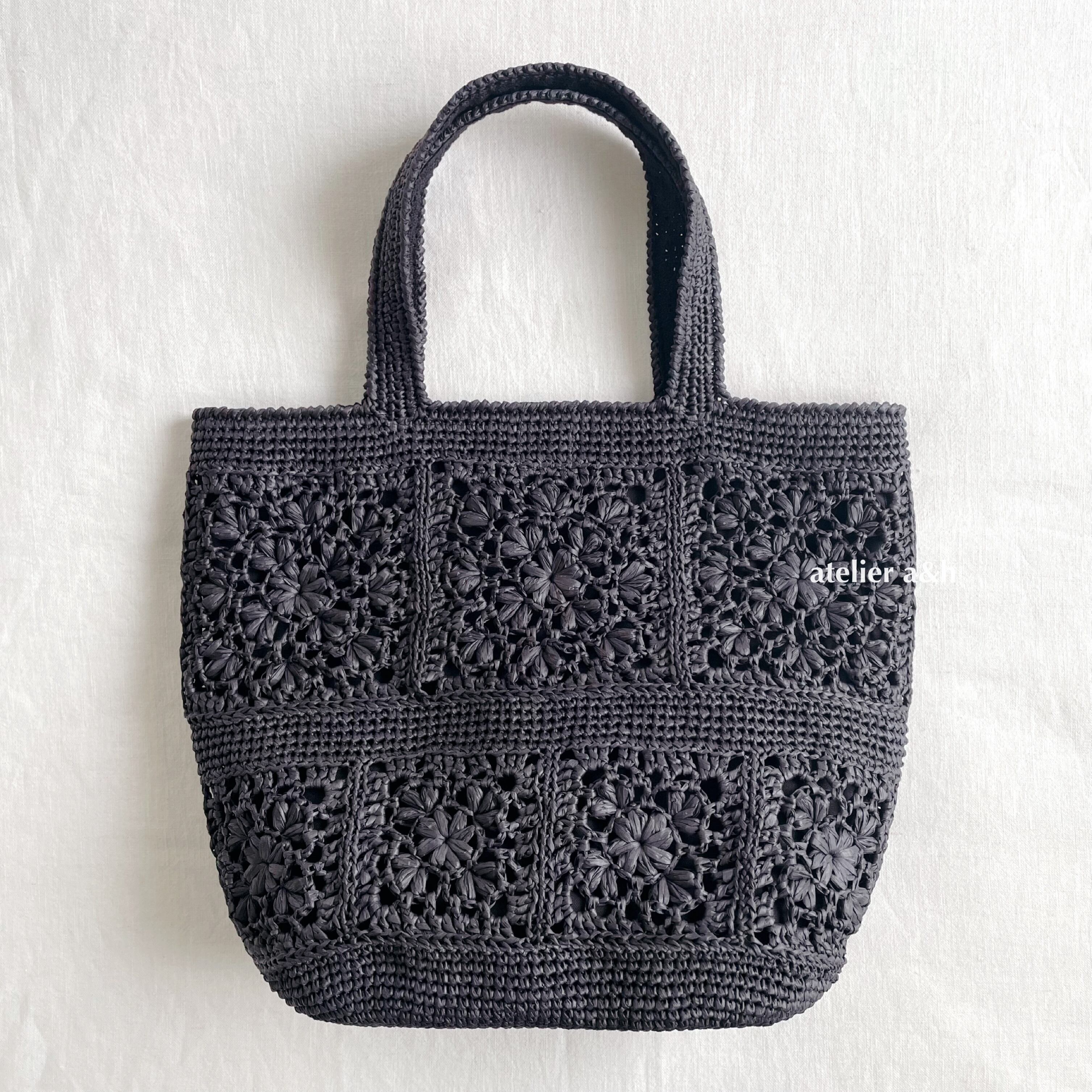《受注製作》マニラヘンプヤーンで編んだ大きなモチーフトートバッグ ブラック