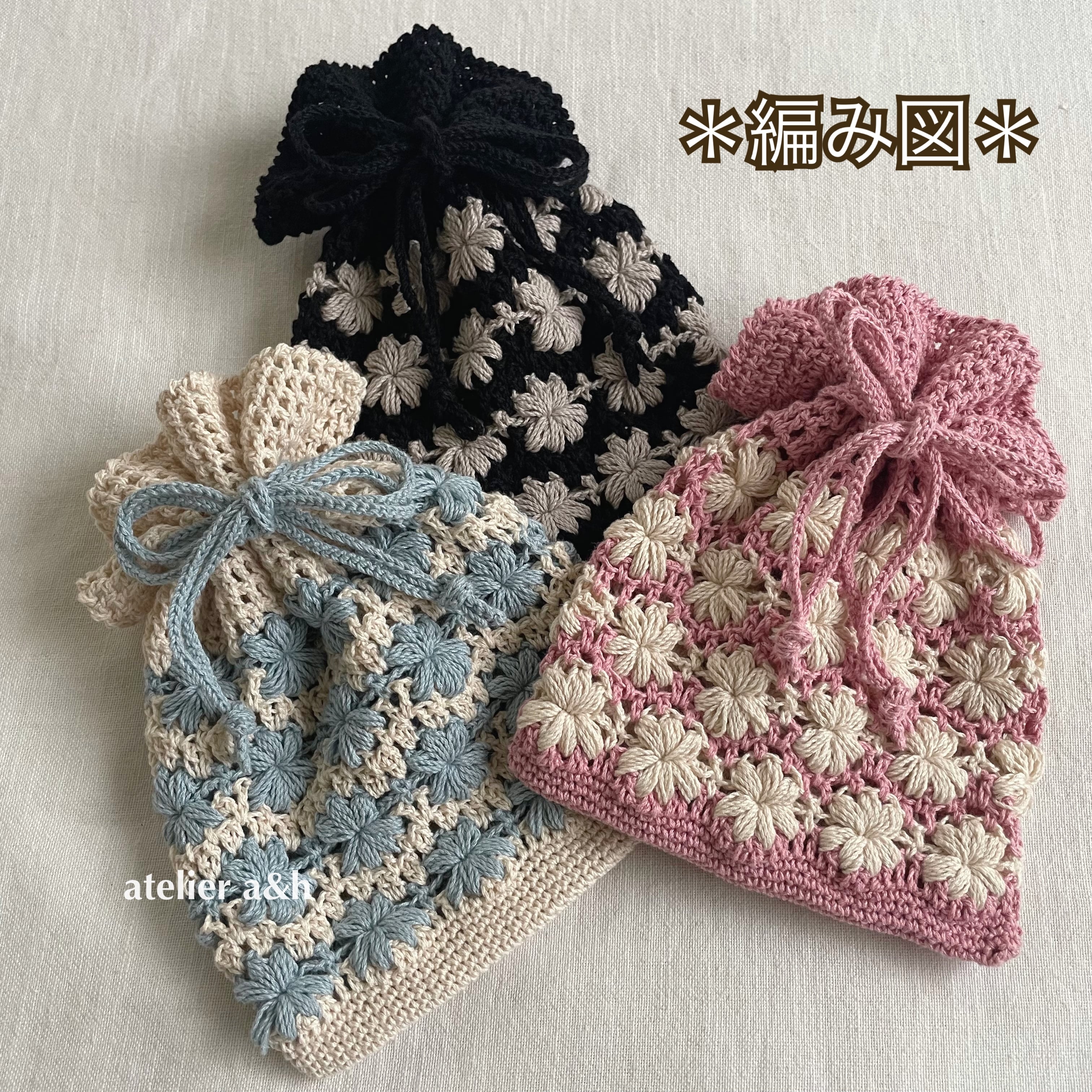 *この編み図を参考にして制作した物を販売する場合は、作品説明に必ず「作品デサイン atelier a&h」と明記してください。