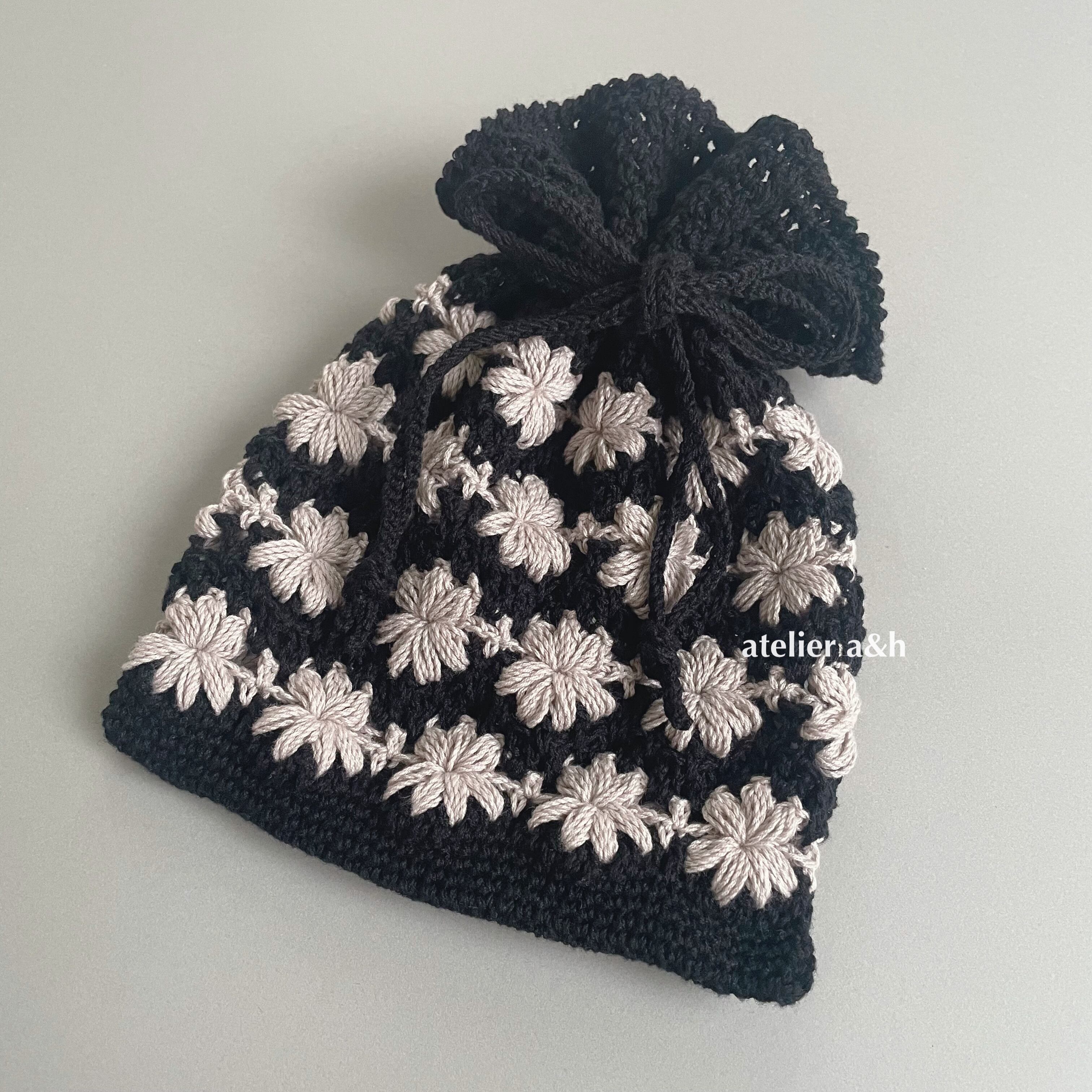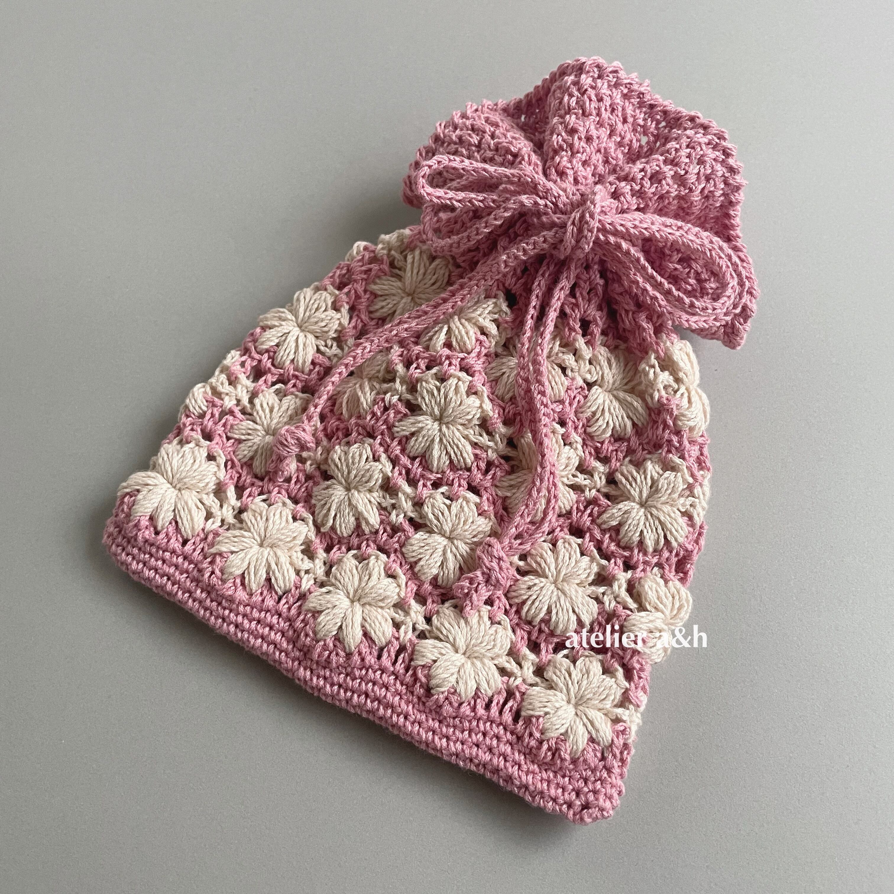 【ダウンロード編み図】かぎ針編み*ちいさな花編みきんちゃく