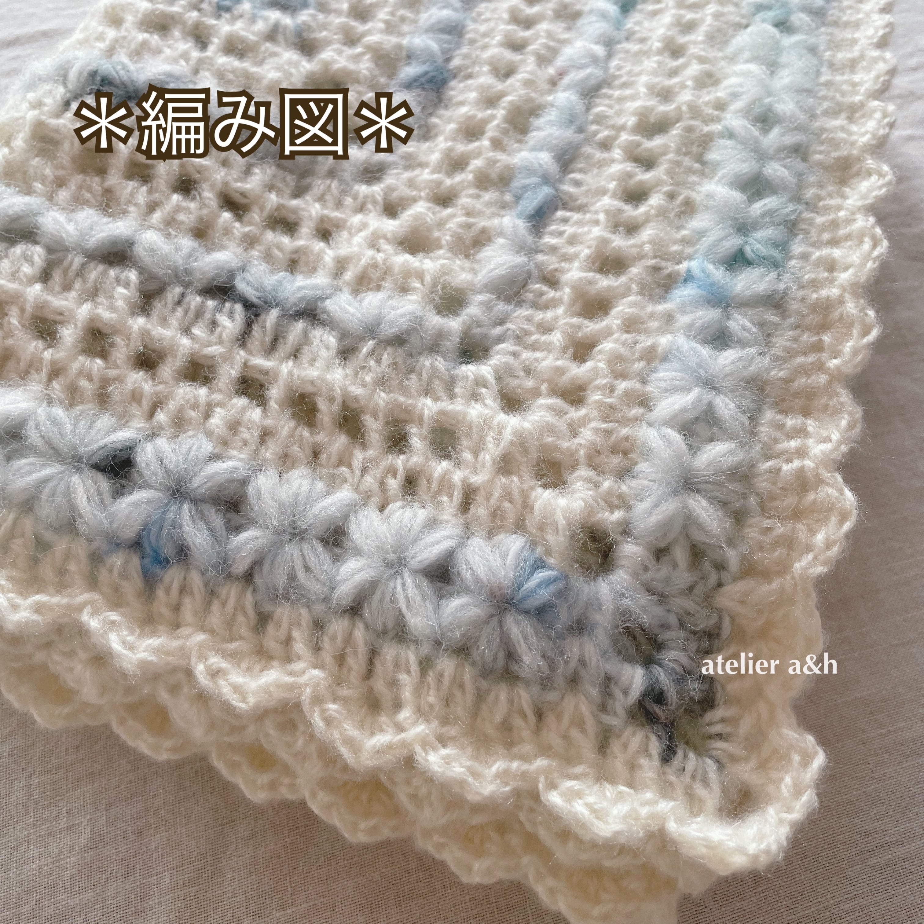 *この編み図を参考にして制作した物を販売する場合は、作品説明に必ず「作品デサイン atelier a&h」と明記してください。