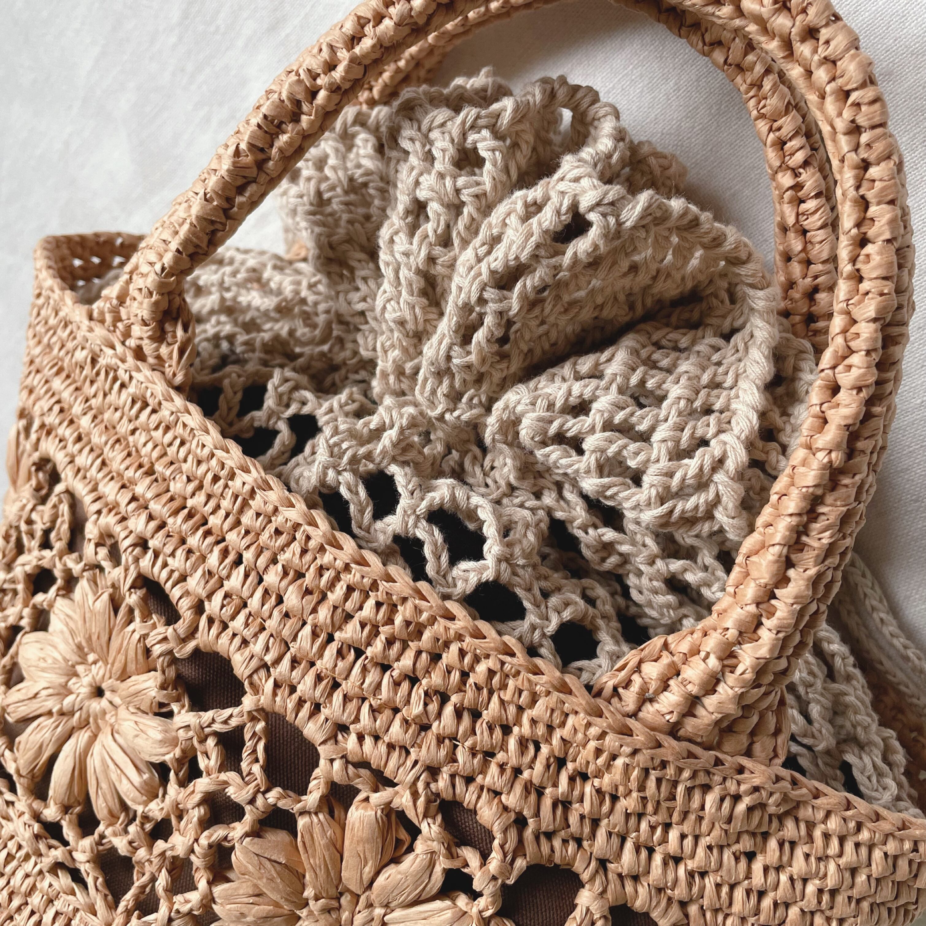 #マルシェバッグ #ストローバッグ #マーガレットモチーフ #ナチュラル #花模様 #小さめサイズ #麻ひもバッグ #おしゃれバッグ #普段使い